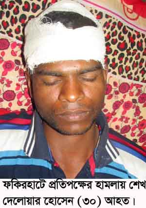 এম এম সি মেহেদী হাসান ঃ বাগেরহাটের ফকিরহাট উপজেলার পশ্চিম বাহিরদিয়া গ্রামে তুচ্ছ ঘটনাকে কেন্দ্র করে প্রতিপক্ষের হামলায় একই পরিবারের ৩জন আহত হয়েছে। ঘটনাটি ১৩ ফেব্রæয়ারি সকালে উক্ত এলাকায় ঘটেছে। আহতের পরিবার জানায়, নিজের কোদাল চাওয়াকে কেন্দ্র করে মোঃ দেলোয়ার শেখের সাথে একই এলাকার হানিফ শেখের সাথে বাকবিতম্বার এক পর্যায়ে হানিফ শেখ সহ ৩/৪জন মিলিত হয়ে লাঠি-সোঠা দিয়ে দেলোয়ারকে মারপিট করে। এসময় তার বৃদ্ধ পিতা ও ভাই ঠেকাতে আসলে তাদের উপর হামলা করা হয় বলে অভিযোগ করেছে। এতে মোঃ দেলোয়ার শেখ (৩০), পিতা ইছহাক শেখ (৮৫) ও ভাই মুজিবর শেখ (৪০) আহত হয়েছে। আহতদের মধ্যে দেলোয়ার শেখ উপজেলা স্বাস্থ্য কমপ্লেক্সে ভর্তি করেছে। অপর দুইজন প্রাথমিক চিকিৎসা গ্রহন করেছে। এ ব্যাপারে সংশ্লিষ্ট মডেল থানায় লিখিত অভিযোগ করা হয়েছে বলে আহতরা জানান।