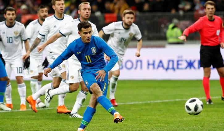 ক্রীড়া ডেস্ক : শুক্রবার রাতে রাশিয়ার মস্কোর লুজনিকি স্টেডিয়ামে বড় জয় পেয়েছে পাঁচবারের বিশ্বচ্যাম্পিয়নরা। ২০১৮ বিশ্বকাপের আয়োজক রাশিয়াকে ৩-০ গোলে হারিয়েছে ব্রাজিল।