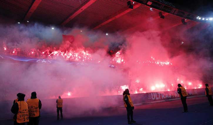 ক্রীড়া ডেস্ক : রিয়াল মাদ্রিদের বিপক্ষে ফিরতি লেগে জয় পেতে মরিয়া ছিল প্যারসি সেইন্ট জার্মেই। মরিয়া ছিল তাদের সমর্থকরাও। পার্ক দেস প্রিন্সের ভেতরে যে পরিমাণ দর্শক ছিল তার চেয়ে কম ছিল না বাইরে। তারা বেশ হট্টগোলও করেছে। মাঠ এবং মাঠের বাইরে আতশবাজি ফুটিয়েছে, আগুনের ফুলকি তৈরি করে চিৎকার-চেচামেচি করেছে। লেজার লাইট দিয়ে দৃষ্টি আকর্ষণ করার চেষ্টা করেছে। খেলোয়াড়দের আসা-যাওয়ার পথেও প্রতিবন্ধকতা সৃষ্টি করার চেষ্টা করেছে। রোনালদোর দিকে বোতলও ছুড়ে মারা হয়েছে। পিএসজি সমর্থকদের আচরণে দুই-দুইবার ম্যাচ বন্ধ করতে বাধ্য হয়েছেন জার্মান রেফারি ফেলিক্স।