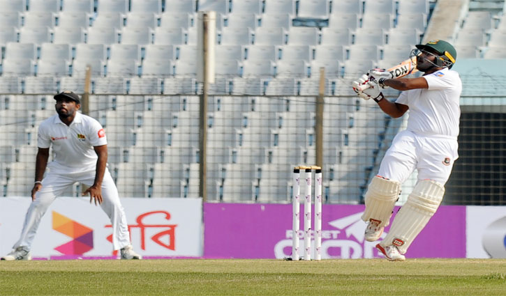 লাঞ্চের আগে ইমরুলকে হারানোর হতাশা: লাঞ্চ বিরতির আগে এটিই ছিল শেষ ওভার।সেই ওভারের চতুর্থ বলে আউট হয়ে গেলেন ইমরুল কায়েস। বাঁহাতি চায়নাম্যান বোলার লাকশান সান্দাকানের বলে এলবিডব্লিউ হয়েছেন বাঁহাতি ব্যাটসম্যান। মুমিনুলের সঙ্গে আলোচনা করেও রিভিউ নেননি ইমরুল। রিভিউ নিলে বাঁচতে পারতেন! টিভি রিপ্লেতে দেখা যায়, বল স্টাম্প মিস করেছে! ৭৫ বলে ৪ চারে ৪০ রান করেছেন ইমরুল। তার বিদায়ে ভাঙে ৪৮ রানের দ্বিতীয় উইকেট জুটি। লাঞ্চ বিরতিতে বাংলাদেশের সংগ্রহ ২ উইকেটে ১২০ রান। ২৬ রানে অপরাজিত আছেন মুমিনুল হক।