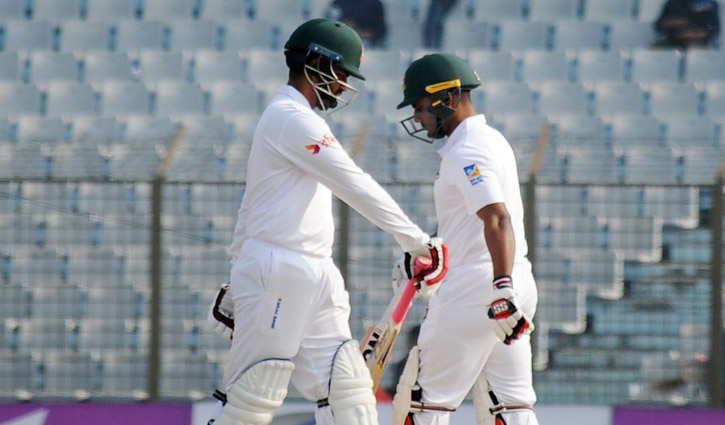 তামিমের ফিফটি: ক্যারিয়ারের ২৫তম টেস্ট ফিফটি পেয়েছেন তামিম ইকবাল। আক্রমণাত্মক ব্যাটিংয়ে ৪৬ বলে ফিফটি করতে ৬টি চারের সঙ্গে একটি ছক্কা হাঁকিয়েছেন বাঁহাতি এই ব্যাটসম্যান।