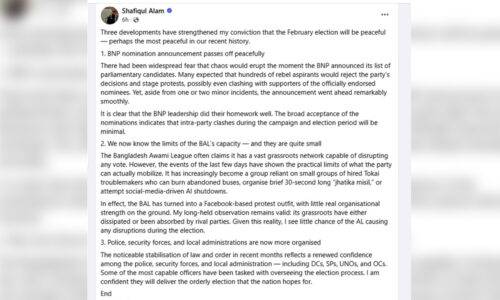 ‘আওয়ামী লীগ দীর্ঘদিন ধরে দাবি করে এসেছে যে, তাদের বিশাল তৃণমূল নেটওয়ার্ক আছে যা যে কোনো নির্বাচন ব্যাহত করতে সক্ষম। কিন্তু গত কয়েকদিনের ঘটনাপ্রবাহ প্রমাণ করেছে- তাদের বাস্তব মাঠ-সংগঠনের ক্ষমতা অত্যন্ত সীমিত।