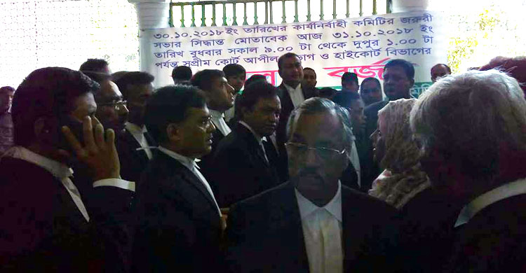 গতকাল মঙ্গলবার জিয়া অরফানেজ ট্রাস্ট দুর্নীতি মামলায় হাইকোর্টের রায় ঘোষণার পর দুপুরে সুপ্রিম কোর্ট আইনজীবী সমিতির সভাপতি জয়নুল আবেদীন আজ বুধবার সকাল ৯টা থেকে দুপুর ১টা পর্যন্ত সুপ্রিম কোর্টের উভয় বিভাগ বর্জনের ঘোষণা দেন।