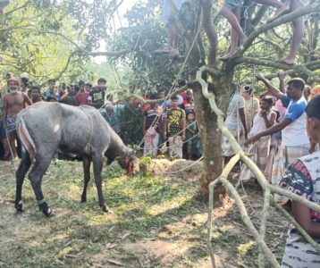 আজিম উদ্দিন, চাঁপাই নবাবগঞ্জ: চাঁপাইনবাবগঞ্জের শিবগঞ্জে আম বাগানে ঘুরে বেড়ানোর সময় ধাওয়া করে একটি নীলগাই ধরেছেন এলাকাবাসী। বুধবার (২৬ অক্টোবর) দুপুরে শিবগঞ্জ উপজেলার দাইপুকুরিয়া ইউনিয়নের বারিক বাজার এলাকায় নীলগাইটিকে প্রায় ১৫–২০ জন ব্যক্তি ধাওয়া করে আটক করে।