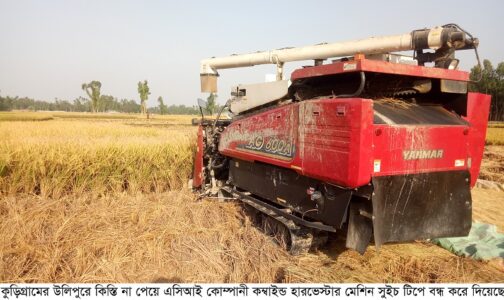 কুড়িগ্রাম প্রতিনিধিঃ কিস্তির টাকা পরিশোধ করতে বিলম্ব হওয়ায় কুড়িগ্রামের উলিপুরে প্রান্তিক কৃষকদের মাঝে সরকারি ভর্তূকী মূল্যে বিতরণ করা কম্বাইন্ড হারভেস্টার (ইয়ানমার) মেশিন অফিস থেকে ডিজিটাল পদ্ধতিতে সুইচ টিপে বন্ধ করে দিয়েছে এসিআই কোম্পানী। ধান কাটা-মাড়াই মৌসুমে মেশিনটি বন্ধ করে দেওয়ায় বিপাকে পড়েছে কৃষক ও মেশিন মালিক। এ ব্যাপারে কৃষক আপেল মাহমুদ গত ৯ মে উপজেলা নির্বাহী অফিসার বরাবর লিখিত অভিযোগ দাখিল করছেন।