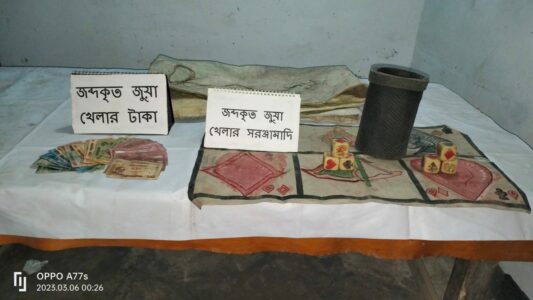 কুড়িগ্রাম প্রতিনিধিঃ কুড়িগ্রামের উলিপুরে জুয়া খেলার সরঞ্জাম ও নগদ অর্থসহ জুয়া খেলা অবস্থায় ৭ জনকে গ্রেফতার করেছে পুলিশ।