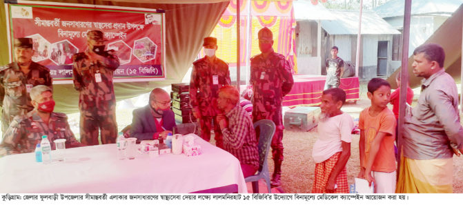 সোমবার দিনব্যাপী স্বাস্থ্যসেবা ক্যাম্পেইনে সীমান্তবর্তী দুই হাজার মানুষ বিনামূল্যে স্বাস্থ্য পরামর্শ ও ঔষধ পেয়ে ভীষণ খুশি।