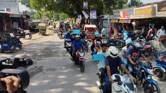কুড়িগ্রাম প্রতিনিধিঃ কুড়িগ্রামে বাল্যাববাহ প্রতিরোধে সচেতনতা বাড়াতে বাইক র্যালি করা হয়েছে। শনিবার সকালে কুড়িগ্রাম কলেজ মোড়স্থ স্বাধীনতার বিজয়স্তম্ভ থেকে একটি বর্ণাঢ্য র্যালি বের হয়ে শহর প্রদক্ষিণ করে। ইয়ুথ এন্ড কমিউনিটি এ্যালায়েন্সের সহযোগিতায় কুড়িগ্রাম বাইকার্স ক্লাব র্যালির আয়োজন করে। অনুষ্ঠানের শুরুতে র্যালির উদ্বোধন করেন অতিরিক্ত পুলিশ সুপার (প্রশাসন) মো. রুহুল আমিন, পৌর মেয়র কাজিউল ইসলাম, বাইকার্স ক্লাবের প্রধান উপদেষ্টা অ্যাডভোকেট আহসান হাবীব নীলু, বাইকার্স ক্লাবের প্রতিষ্ঠাতা এডমিন হোসেন মারুফ, এডমিন এএসএম শাওন, প্রতিষ্ঠাতা সদস্য মিনহাজুল ইসলাম নাসিম, জামিল আহসান পুলক প্রমুখ।