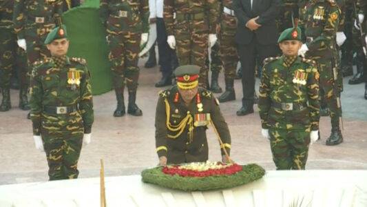 তিনবারের সাবেক প্রধানমন্ত্রী ও বিএনপির চেয়ারপারসন খালেদা জিয়াকে রাষ্ট্রীয় মর্যাদায় চিরনিদ্রায় শায়িত করা হয়েছে। সমাধি শেষে প্রধান উপদেষ্টার পক্ষ থেকে শ্রদ্ধা জানানোর পর সেনাবাহিনী, বিমান বাহিনী, নৌ-বাহিনীর পক্ষ থেকে ও শ্রদ্ধা নিবেদন করা হয়। তাঁদের শ্রদ্ধা নিবেদন শেষে বিউগলে বেজে উঠে করুণ সুর।