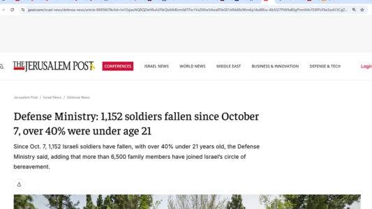 ফিলিস্তিনের অবরুদ্ধ গাজায় ২০২৩ সালের ৭ অক্টোবর থেকে শুরু হওয়া অভিযানে ১১৫২ ইসরাইলি সেনা নিহত হয়েছেন। এদের মধ্যে ৪০ শতাংশের বেশি সেনার বয়স ২১ বছরের কম। খবর জেরুজালেম পোস্টের।