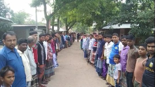 আজিম উদ্দিন, চাঁপাই নবাবগঞ্জ: চাঁপাইনবাবগঞ্জের ভারতীয় সীমান্তবর্তী এলাকার বাসিন্দারা গ্রেফতারের আতঙ্কে দিন পার করছেন। মাদকসহ মিথ্যা ও সাজানো মামলা থেকে গ্রেফতারের প্রতিবাদে ও নিরাপত্তা চেয়ে মানববন্ধন করেছে শিবগঞ্জ উপজেলার মনাকষা ইউনিয়নের ১০ গ্রামের বাসিন্দারা। বুধবার (২০ জুলাই) বিকেলে মনাকষা ইউনিয়নের সাহাপাড়া বাজারে এই মানববন্ধনের আয়োজন করে স্থানীয় গ্রামবাসী।