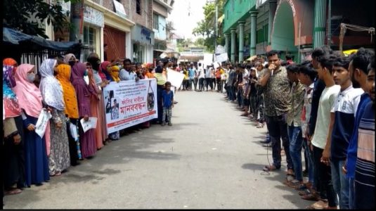 আজ মঙ্গলবার বলো সাড়ে ১১টার দকিে বাংলাদশে ছাত্র অধকিার পরষিদ চাঁপাইনবাবগঞ্জ জলো শাখার ব্যানারে প্রসেক্লাবরে সামনে ঘন্টাব্যাপী মানববন্ধন অনুষ্ঠতি হয়। মানববন্ধনরে আগে প্রকাশ্যে হত্যাকারীর ফাসি দাবতিে বক্ষিোভ মছিলি বরে করে প্রধান প্রধান সড়ক প্রদক্ষণি করে তারা।