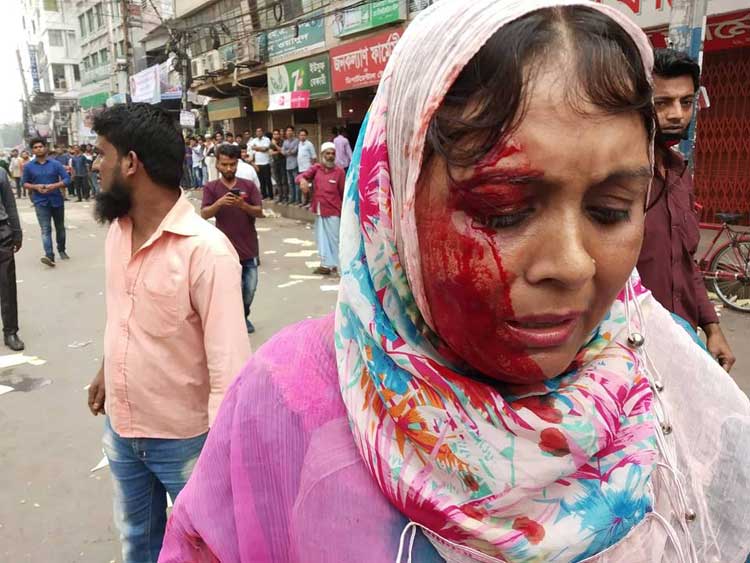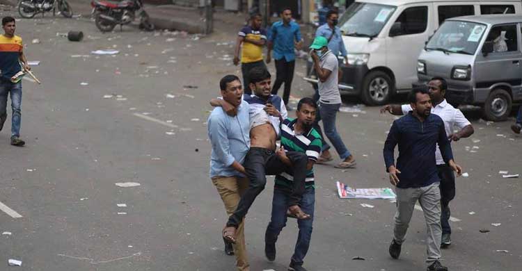 আহত একজনকে চিকিৎসার জন্য নিয়ে যাচ্ছেন বিএনপি নেতাকর্মীরা