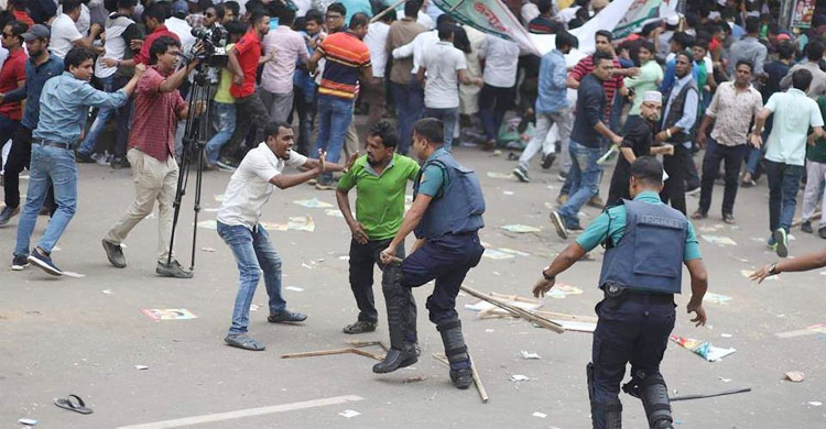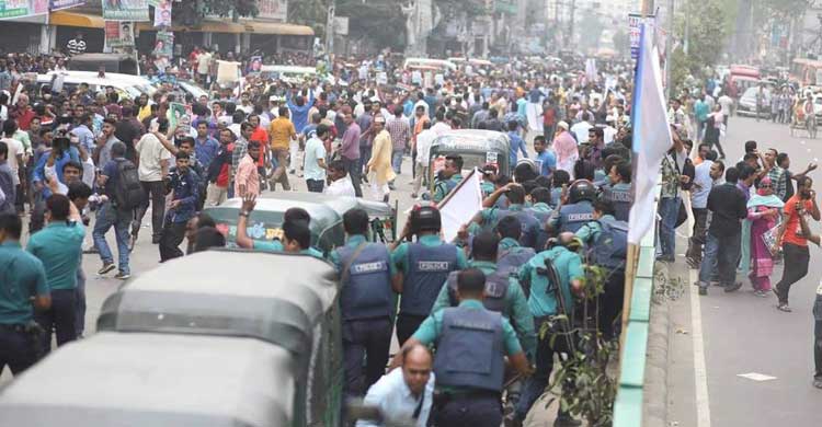 বিএনপি নেতাকর্মীদের রাস্তা থেকে সরিয়ে দিচ্ছেন পুলিশ