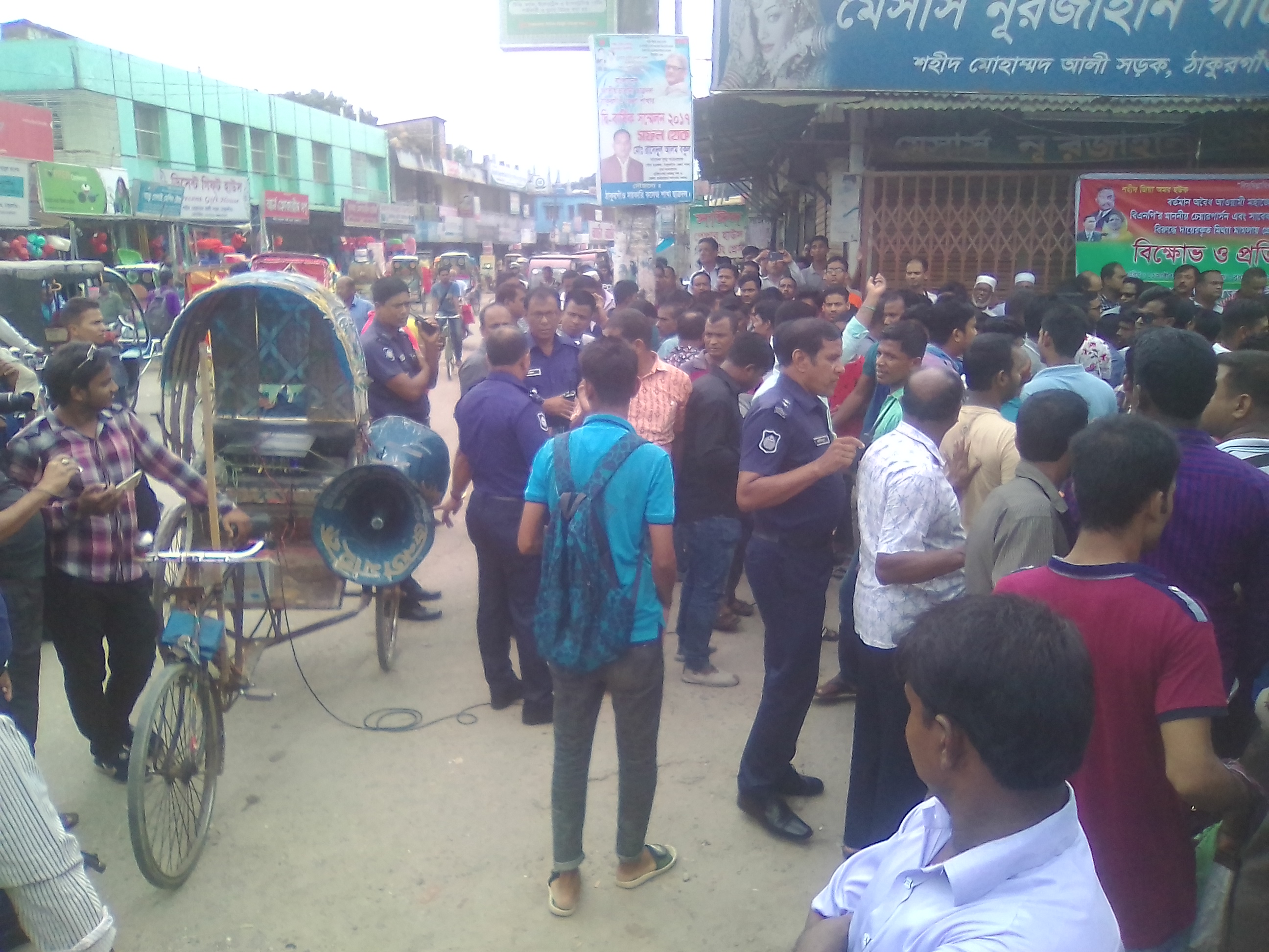 বিক্ষোভ ও প্রতিবাদ সমাবেশের এক পর্যায়ে পুলিশ মাইক বন্ধ করে দিলে ঘটনাস্থল উত্তপ্ত হয়ে যায়। এসময় জেলা বিএনপির নেতারা নেতাকর্মীদের শান্ত করলে কিছুক্ষণ বন্ধ থাকার পুনরায় কর্মসূচি শুরু হয়।