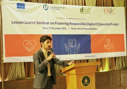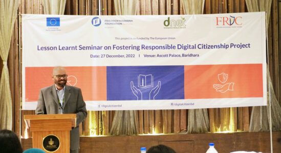 আজ মঙ্গলবার ঢাকার বারিধারায় একটি হোটেলে ইউরোপীয় ইউনিয়ন (ইইউ) এবং ফ্রেডরিক নওম্যান ফাউন্ডেশন ফর ফ্রিডম’এর যৌথ’এর অর্থায়নে, ডিনেট Lesson Learnt Seminar on Fostering Responsible Digital Citizenship Project শীর্ষক সেমিনারটি আয়োজন করে। উক্ত সেমিনারে মূলত ‘Foster Responsible Digital Citizenship to Promote Freedom of Expression in Bangladesh’ প্রকল্পের অধীনে গৃহীত বিভিন্ন সক্ষমতা বৃদ্ধিমূলক, সচেতনতামূলক ও পরামর্শমূলক উদ্যোগের সফলতা ও শিক্ষণীয় দিকগুলো তুলে ধরে ভবিষ্যতে করণীয় নানা বিষয় নিয়ে আলোচনা করা হয়। সেমিনারে উপস্থিত বিশ্ববিদ্যালয়ের শিক্ষার্থী, শিক্ষক, আইন শৃঙ্খলা বাহিনীর কর্মকর্তা, দেশি-বিদেশি উন্নয়ন খাতের কর্মকর্তা, আইনজীবী, সরকারি কর্মকর্তা ও গণমাধ্যম কর্মীরা বাংলাদেশে ডিজিটাল মাধ্যম ব্যবহারে নানা সম্ভাবনা ও প্রতিবন্ধকতা নিয়ে কথা বলেন এবং অনলাইন মাধ্যমকে দায়িত্বশীলভাবে ব্যবহার করে সমাজে ইতিবাচক পরিবর্তন আনার বিষয়ে পরামর্শ দেন।