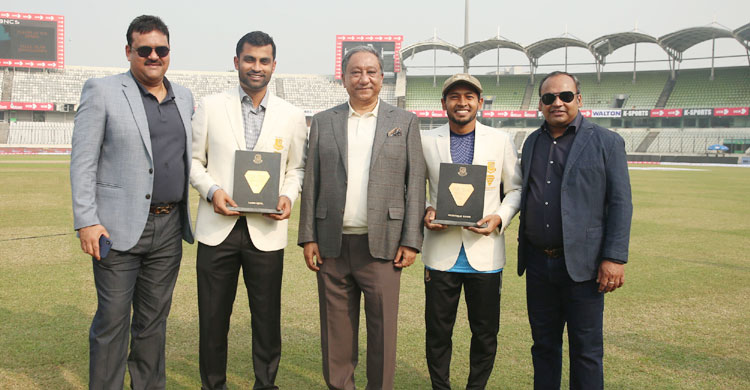 সাদা ব্লেজার এবং বিশেষভাবে তৈরি ক্রেস্ট উপহার দেয়া হলো মুশফিক এবং তামিম ইকবালকে। পুরস্কার বিতরণের সময় সাকিব মিরপুরে না থাকায়, সরাসরি তার হাতে তুলে দেয়া যায়নি এই পুরস্কার।