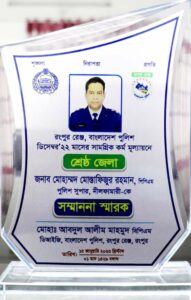 আল-আমিন,নীলফামারীঃ নীলফামারীতে যোগদানের মাত্র ৪ মাসের মধ্যেই পরপর ৩ বার রংপুর রেঞ্জের শ্রেষ্ঠ পুলিশ সুপার হলেন পুলিশ সুপার মোহাম্মদ মোস্তাফিজুর রহমান পিপিএম।