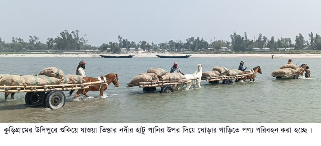 উপজেলার তিস্তা পাড়ের পানিয়ালের ঘাটের মালিক সোহরাওয়ার্দী জানান, এখন তিস্তা নদীতে পানি অনেক কম। চর ভেসে উঠেছে যেখানে বালু আর বালু। এই চরাঞ্চলে কৃষি পণ্য বহন করার জন্য এক মাত্র উপায় ঘোড়ার গাড়ি। নদীতে পানি এসে যখন নদী জীবন ফিরে পায় তখন নৌকা দিয়ে পারাপার করা হয়। বিভিন্ন চরাঞ্চল থেকে কৃষি পণ্য ঘোড়ার গাড়িতে নিয়ে এপার থেকে ওপারে নিয়ে আসা যাওয়া করছেন। তিস্তায় পানি কমে যাওয়ায় সামান্য পানির উপর দিয়ে ঘোড়ার গাড়ি মালামাল পার করছে বলে জানান।
