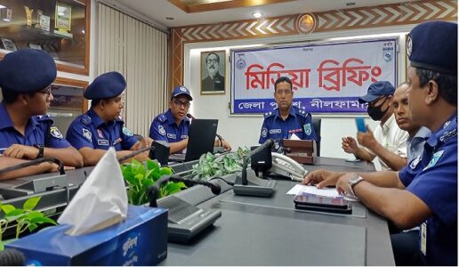 আল-আমিন,নীলফামারী: নীলফামারীতে আন্তঃজেলা অটোভ্যান চক্রের তিন জন কুখ্যাত ছিনতাইকারীকে গ্রেফতার করায় প্রেস ব্রিফিং হয়েছে। বৃহস্পতিবার (২০ এপ্রিল/২৩) দুপুরে নীলফামারী জেলা পুলিশ সুপার কার্যালয়ের সম্মেলন কক্ষে প্রেস ব্রিফিং করেন জেলা পুলিশ সুপার মোহাম্মদ মোস্তাফিজুর রহমান পিপিএম।