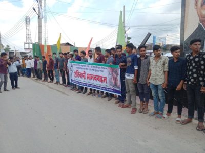 সোমবার(১০ অক্টোবর) দুপুরে জলঢাকা পৌর শহরের ট্রাফিক মোড় বঙ্গবন্ধু ম্যুর্যাল চত্বরে এ মানববন্ধন অনুষ্ঠিত হয়েছে। উপজেলা সূধীসমাজের সর্বস্তরের মানুষ, উপজেলা ছাত্রলীগসহ বিভিন্ন ছাত্র সংগঠনের