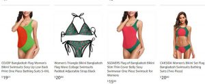 নিউজ ডেস্ক :বাংলাদেশের পতাকার আদলে তৈরি বিকিনি, হাফপ্যান্ট, জাঙ্গিয়া বিক্রি করছে যুক্তরাষ্ট্রের ই-কমার্স সাইট অ্যামাজন। সাইটটিতে প্রবেশ করে সার্চ অপশনে ইংরেজিতে ‘বাংলাদেশ ফ্ল্যাগ’ লিখে সার্চ দিলে এসব পণ্যের ছবি দেখা যাচ্ছে।