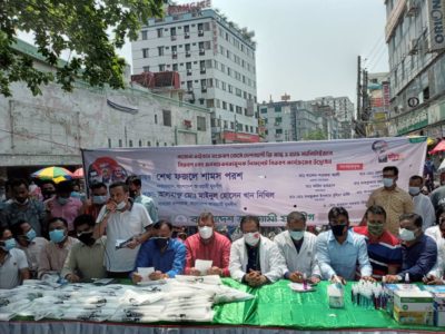 বক্তব্য শেষে ফার্মগেটে সাধারণ মানুষের মাঝে মাস্ক, হ্যান্ড স্যানিটাইজার, সাবান ও সচেতনতামূলক লিফলেট বিতরণ করা হয়।
