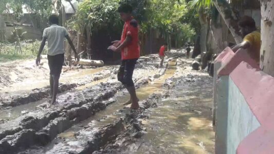 মোঃ শরিফুল ইসলাম, রাজিবপুর (কুড়িগ্রাম) প্রতিনিধিঃ কুড়িগ্রাম জেলার চর রাজিবপুর উপজেলার বালিয়ামারি কালাইয়ের চর বর্ডার হাটে পণ্য আনা নেওয়ায় ভোগান্তিতে হাটের ক্রেতা বিক্রেতারা। বর্ডার হাট খোলার পর থেকে আয় রোজগার ও পরিবারের দুশ্চিন্তার থেকে মুক্তি পেয়েছেন বর্ডার হাটের সংশ্লিষ্ট ক্রেতা, ব্যবসায়ীরা ও শ্রমিকেরা । বালিয়ামারী-কালাইর চর সীমান্ত হাট হচ্ছে বাংলাদেশ-ভারত মৈত্রী অন্যতম সীমান্ত হাট যা ২০১১ সালে রংপুর বিভাগের কুড়িগ্রাম জেলার চর রাজিবপুর উপজেলায় বালিয়ামারি সীমান্ত ও ভারতের মেঘালয় রাজ্যের কালাইচর সীমান্তের জিরো পয়েন্টে চালু হয়। হাটের উদ্বোধন করেন তৎকালীন বাংলাদেশ ও ভারতের বাণিজ্যমন্ত্রী ফারুক খান এবং আনন্দ শর্মা।