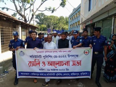 শনিবার (২৯ অক্টোবর) সকালে রাজিবপুর থানা ও কমিউনিটি পুলিশিং ফোরাম রাজিবপুর এর আয়োজনে রাজিবপুর থানা চত্বর থেকে একটি র্যালী বের হয়ে বাজার, রাজিবপুর সরকারী পাইলট উচ্চ বিদ্যালয় প্রদক্ষিন করে থানায় গিয়ে মাদক ও বল্যবিবাহ নিয়ন্ত্রনে আলোচনা সভা হয়।
