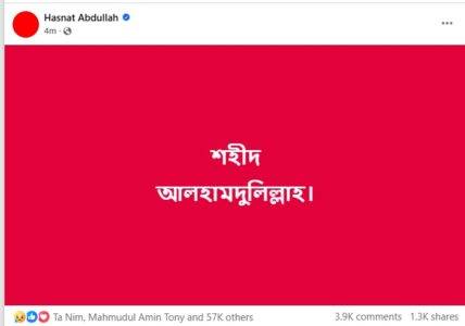পোস্টে হাসনাত লেখেন, শহীদ আলহামদুলিল্লাহ।