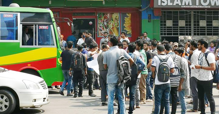 বুধবার বেলা সাড়ে ১১টার দিকে শাহবাগ মোড়ে অবস্থান নিয়ে স্লোগান দিতে থাকেন তারা।