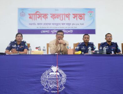 আদনান চৌধুরী: সিলেট : ০৬ জুলাই সকালে সিলেট জেলা পুলিশ লাইন্সের হলরুমে মাসিক আইন-শৃঙ্খলা সভা অনুষ্ঠিত হয়।