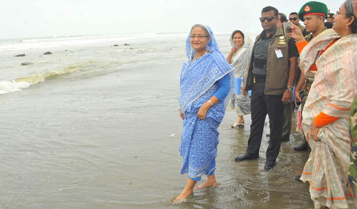 শনিবার সকালে কক্সবাজার যাওয়ার পর দুপুর সাড়ে ১২টার দিকে সৈকতে নামেন প্রধানমন্ত্রী। সেখানে তিনি কিছুক্ষণ খালি পায়ে হাঁটেন, নামেন পানিতেও। সঙ্গে ছিলেন কয়েকজন সেনাসদস্য ও অন্যান্য সফর সঙ্গী।