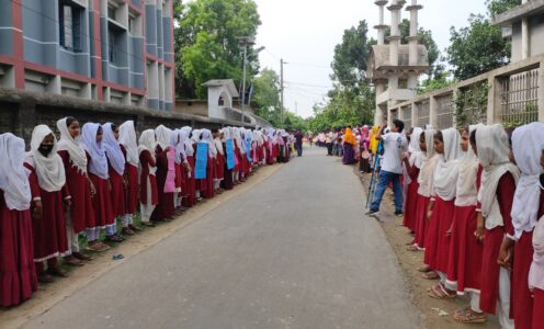 আজিম উদ্দিন, চাঁপাই নবাবগঞ্জ: চাঁপাইনবাবগঞ্জে বাইসাইকেল চালানো নিয়ে বাকবিতন্ডার জের ধরে নবম শ্রেণীর ছাত্র সিহাব আলীকে হত্যার বিচারের দাবিতে মানববন্ধন অনুষ্ঠিত হয়েছে। বুধবার (১৪ জুন) সকালে শিবগঞ্জ উপজেলার দুর্লভপুর উচ্চ বিদ্যালয়ের সামনে এই মানববন্ধন অনুষ্ঠিত হয়।