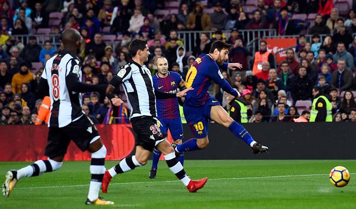 খেলাধুলা ডেস্ক : লা লিগায় নিজের ৪০০তম ম্যাচের মাইলফলকটা গোল দিয়েই স্মরণীয় করে রাখলেন লিওনেল মেসি। তাতে লেভান্তেকে ৩-০ গোলে হারিয়ে নতুন বছরের শুরুটা জয় দিয়েই করল বার্সেলোনা। দলের অন্য দুটি গোল করেছেন লুইস সুয়ারেজ ও পাওলিনহো।