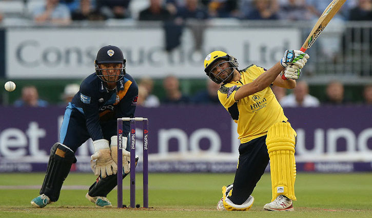 ডার্বির কাউন্টি গ্রাউন্ডে মঙ্গলবার রাতে প্রথম কোয়ার্টার ফাইনালের এই ম্যাচে টস হেরে ব্যাট করতে নেমেছিল হ্যাম্পশায়ার। ওপেনিংয়ে নামা আফ্রিদি ওয়েইন ম্যাডসেনের করা ইনিংসের প্রথম ওভারেই হাঁকান ৪টি চার। এর মধ্যে শেষ তিন বলে টানা তিনটি, মানে চারের হ্যাটট্রিক!