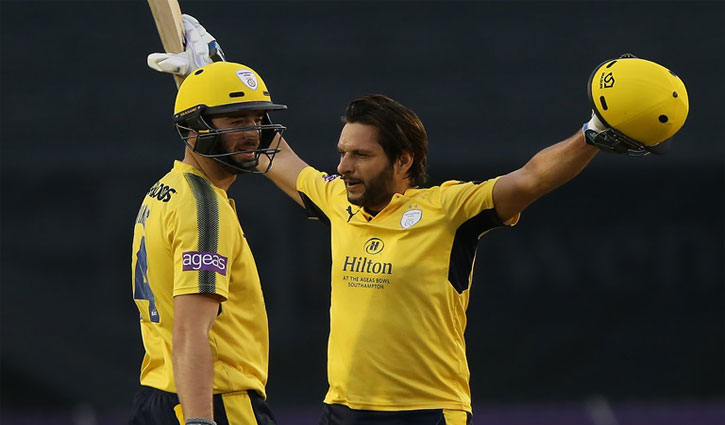 হ্যাম্পশায়ারের রানের পাহাড়ে চাপা পড়ে ১৪৮ রানেই অলআউট হয়ে যায় ডার্বিশায়ার। কাকতালীয়ভাবে হ্যাম্পশায়ারের জয়টাও আফ্রিদির রানের সমান ঠিক ১০১ রানে!