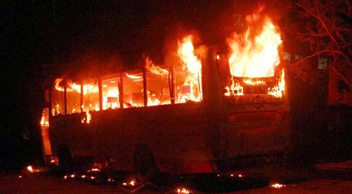 গাজীপুরে বাসচাপায় শ্রমিক নিহত, বাসে আগুন