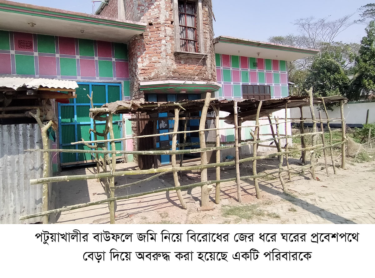 বাউফলে ঘরের প্রবেশ পথে বেড়া!