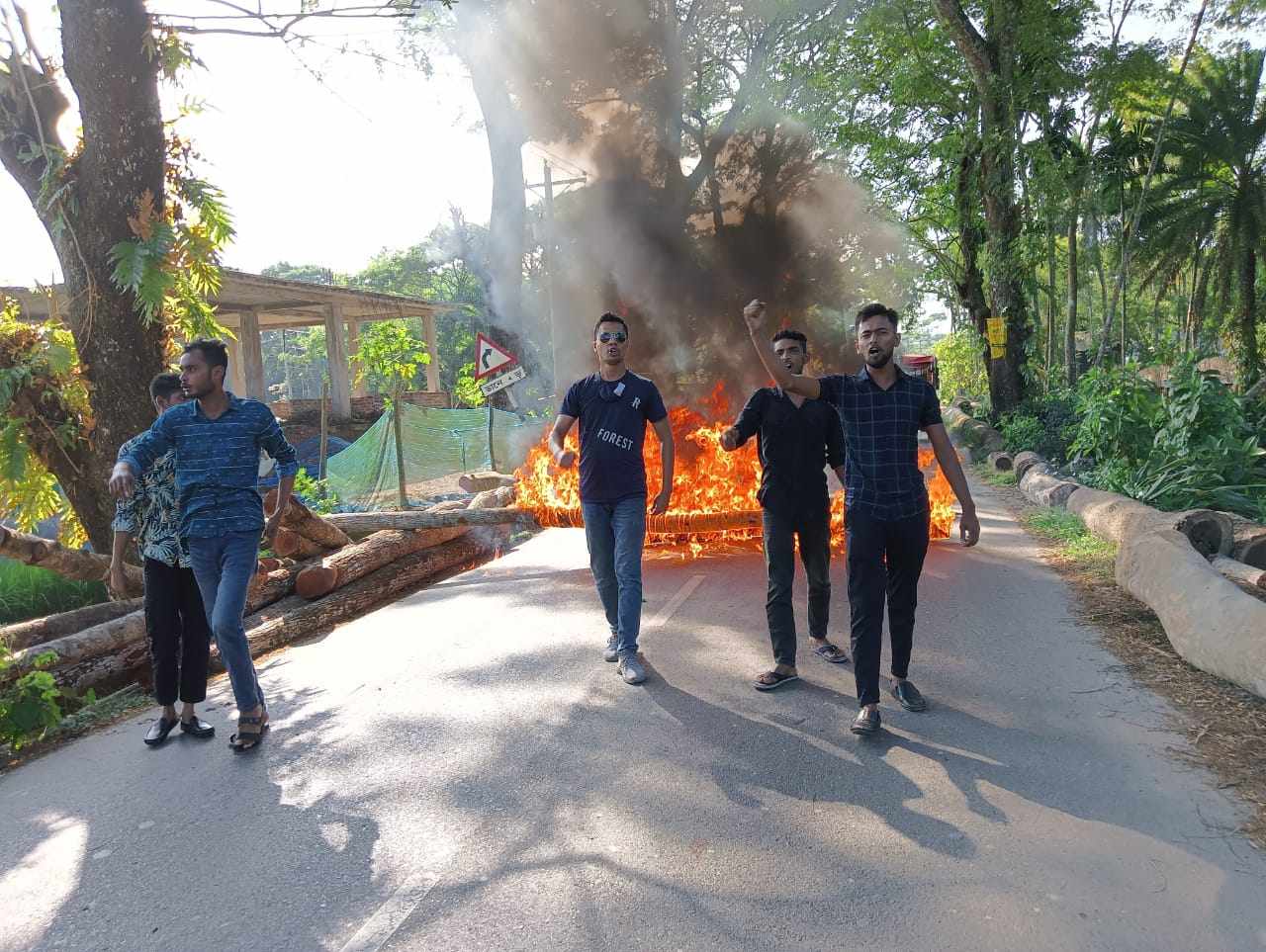 বাউফলে সড়ক অবরোধ করে আগুন জ্বেলে…
