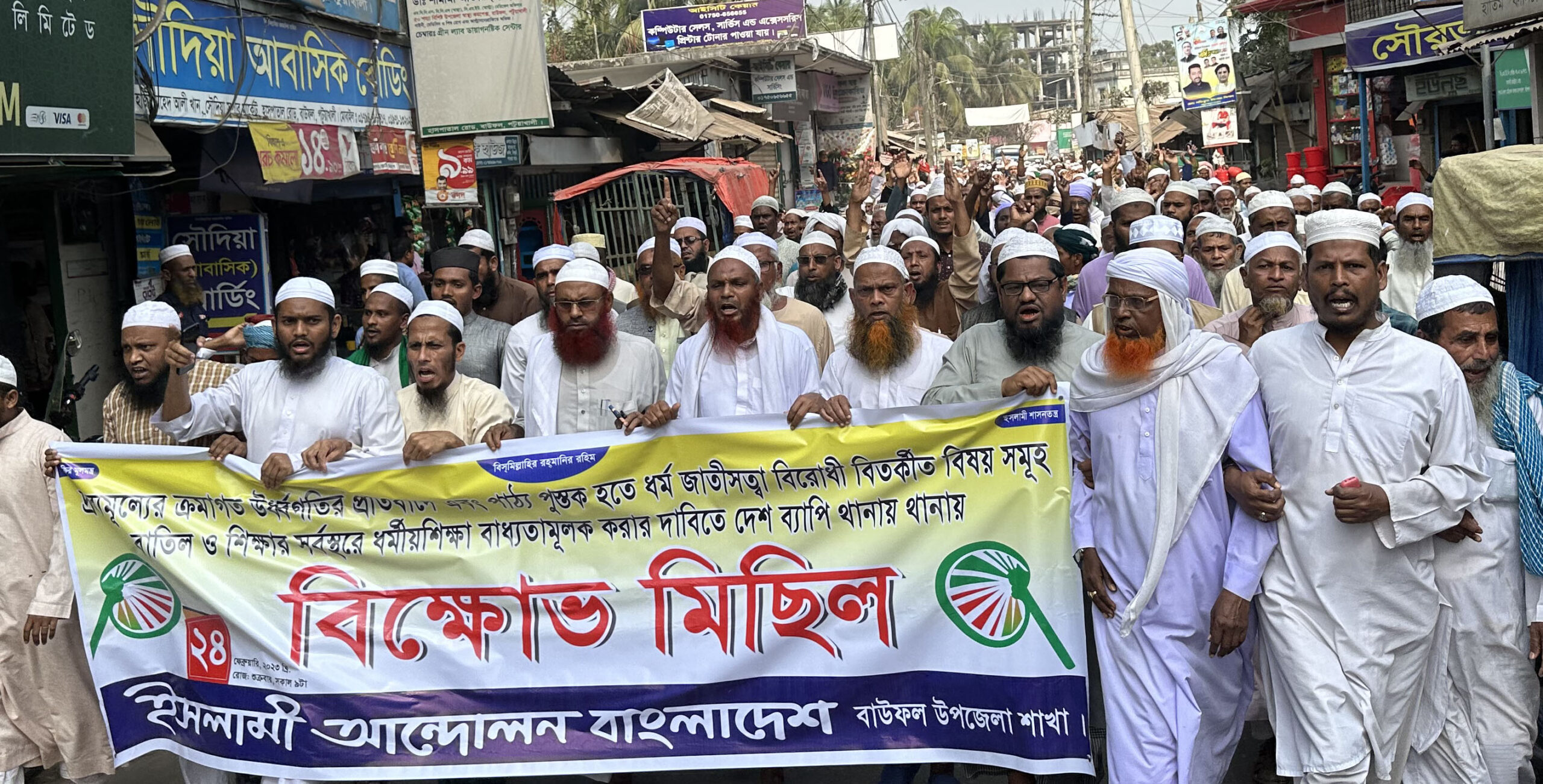 বাউফলে দ্রব্যমূল্যের উর্ধ্বগতির প্রতিবাদে বিক্ষোভ সমাবেশ