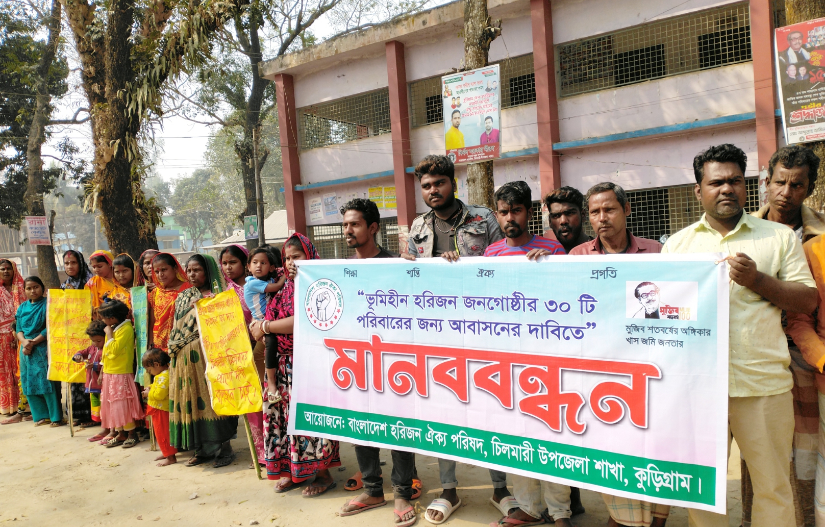 হরিজন সম্প্রদায়ের আবাসনের দাবিতে মানববন্ধন