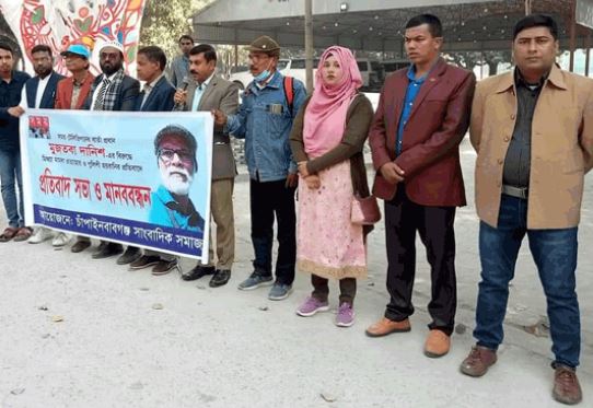 সাংবাদিকের নামে মামলা প্রত্যাহারের দাবিতে মানববন্ধন