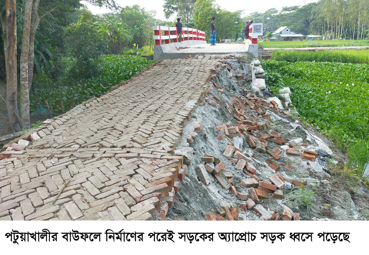 বাউফলে নির্মাণের পরই ধ্বসে পড়লো