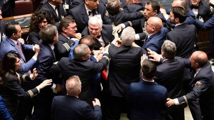 বক্সিং রিংয়ে পরিণত ইতালির সংসদ (দেখুন…