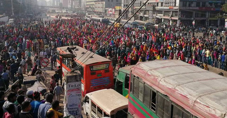 উত্তরায় সড়ক অবরোধ পোশাকশ্রমিকদের