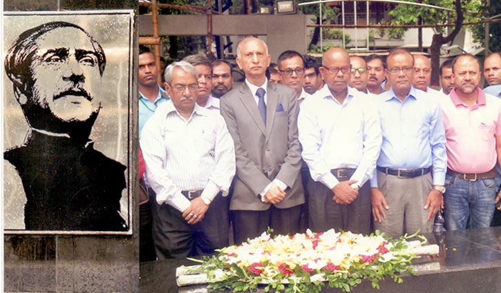 জাতির জনক বঙ্গবন্ধুর প্রতিকৃতিতে পুষ্পস্তবক অর্পণ