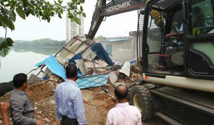 গুলশান লেকপাড়ে অবৈধ স্থাপনা উচ্ছেদে অভিযান…