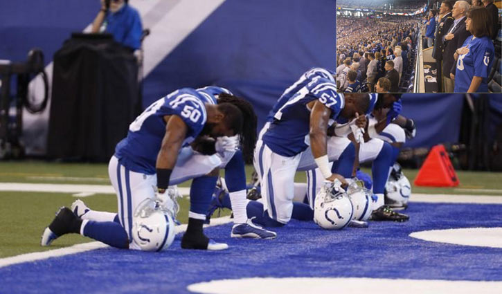 জাতীয় সংগীত চলার সময় দাঁড়িয়ে হাঁটু…
